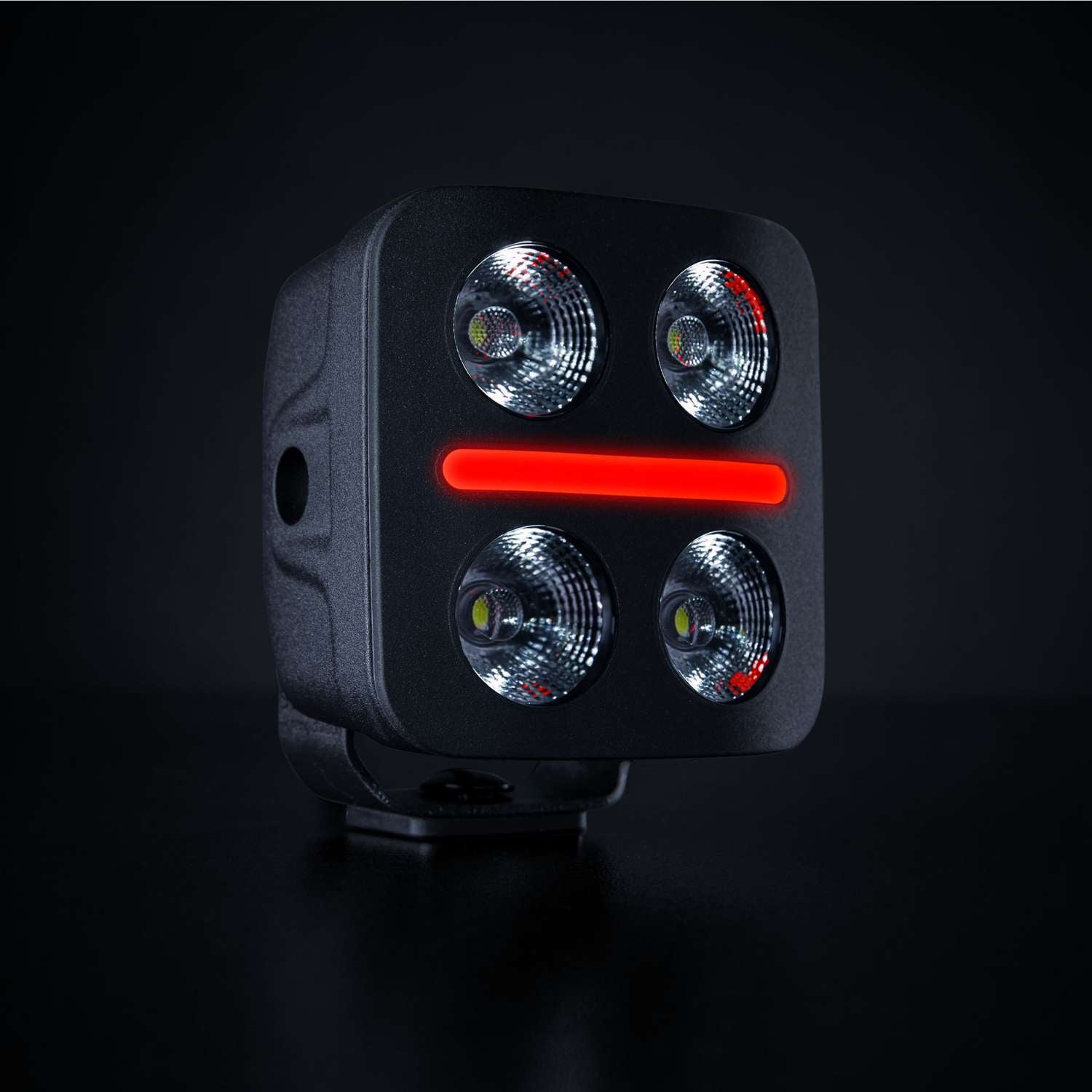 The Qube will be your perfect companion no matter where you work. The light's compact size and shape, measuring 96,88 mm high, will fit anywhere. It stands ready for challenging work and dark nights with a range of 59 m and a force of more than 2920 actual lumens. The rich, bold glow of the red and amber position light stands out anywhere you go.